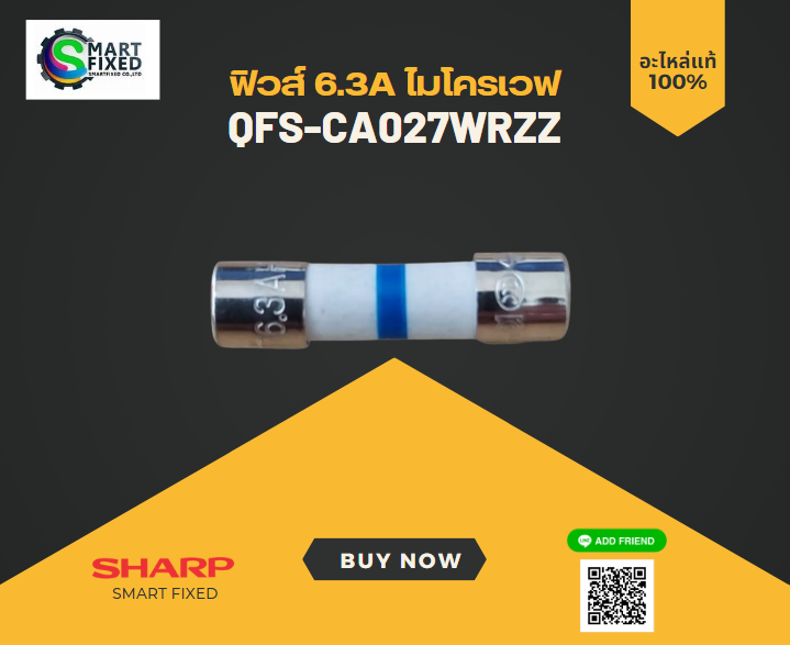 รายละเอียดสินค้า อะไหล่แท้ศูนย์/ฟิวส์ 6.3A ไมโครเวฟชาร์ป/QFS-CA027WRZZ/ใช้กับรุ่นR-295P อะไหล่แท้ศูนย์/ฟิวส์ 6.3A ไมโครเวฟชาร์ป/QFS-CA027WRZZ/ใช้กับรุ่นR-295P ใช้กับรุ่น R-295P R-220 R-278P
